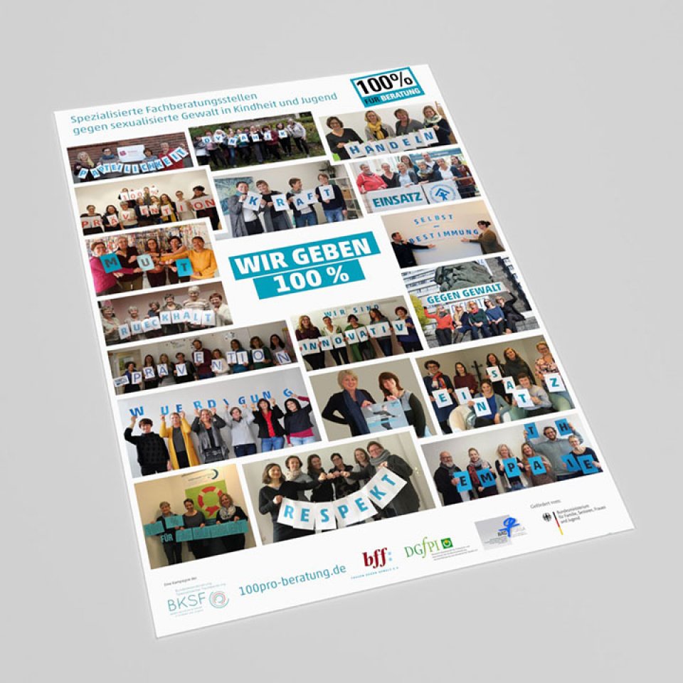 Selfieplakat der Fachberatungsstellen "Wir geben 100%"