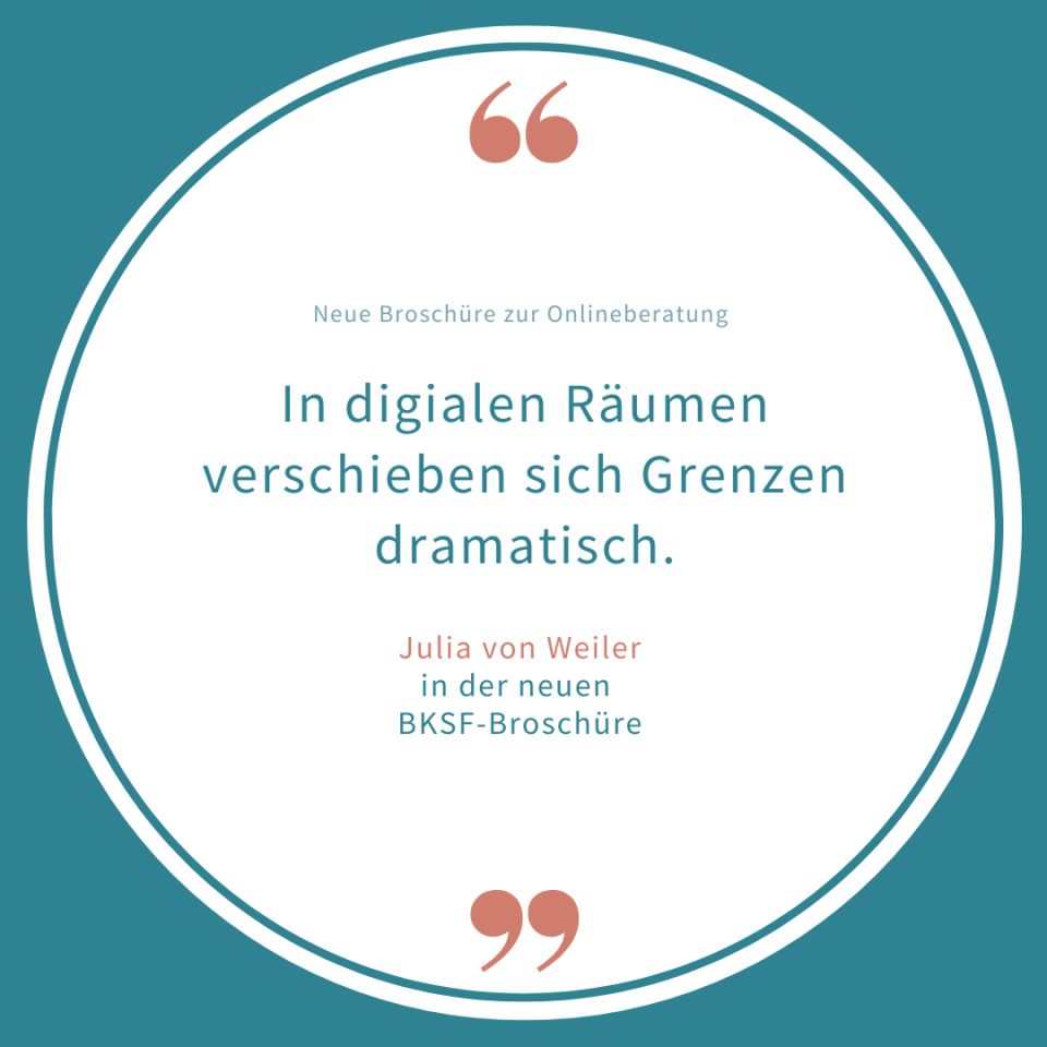 Ihr Artikel in der BKSF-Broschüre zur Onlineberatung findet sich hier: www.bundekoordinierung.de/onlineberatung2